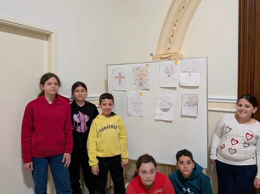 Displaced Christian children at the Greek-Melkite Catholic Patriarchate Shelter in Beirut, March 2026.